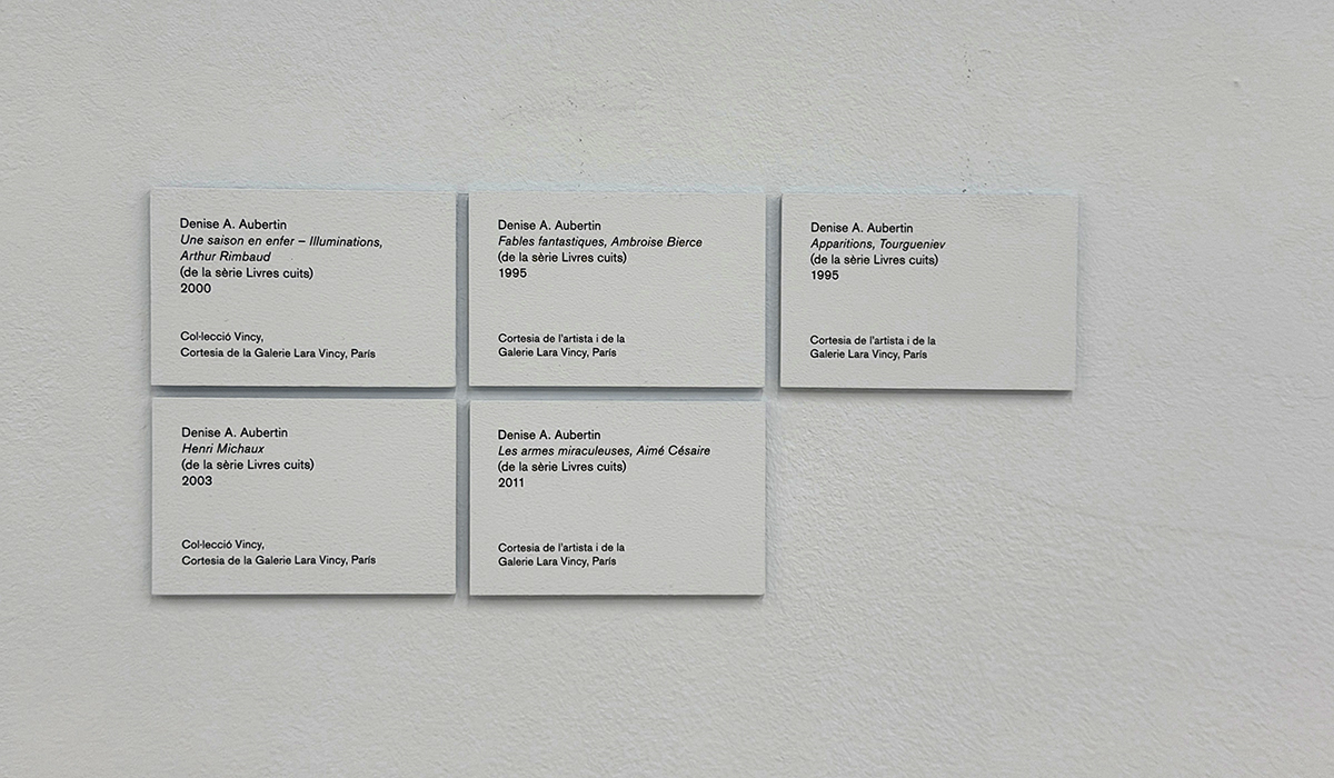 Artistas de la primera exposición: Denise A. Aubertin, Joan Brossa, Henri Chopin, Maria Loboda, Henrik Olesen y Rosemarie Trockel.