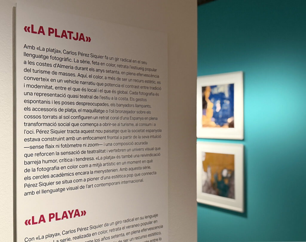 En el ciclo fotográfico ‘La playa’ Pérez Siquier retrató en primerísimo, agresivo primer plano el novedoso veraneo guiri y autóctono en los arenales andaluces.