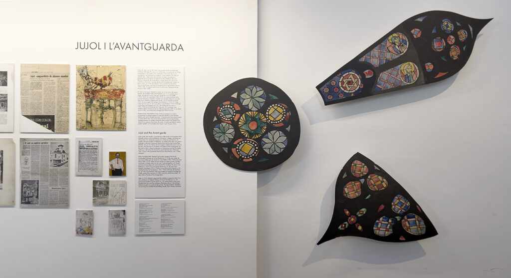 El escenario de la Basílica del Pi es especialmente significativo para celebrar esta exposición, dado que Jujol hizo el monumento a Santa Vedruna y reconstruyó el rosetón gracias a los dibujos que habían hecho sus estudiantes antes de la guerra.